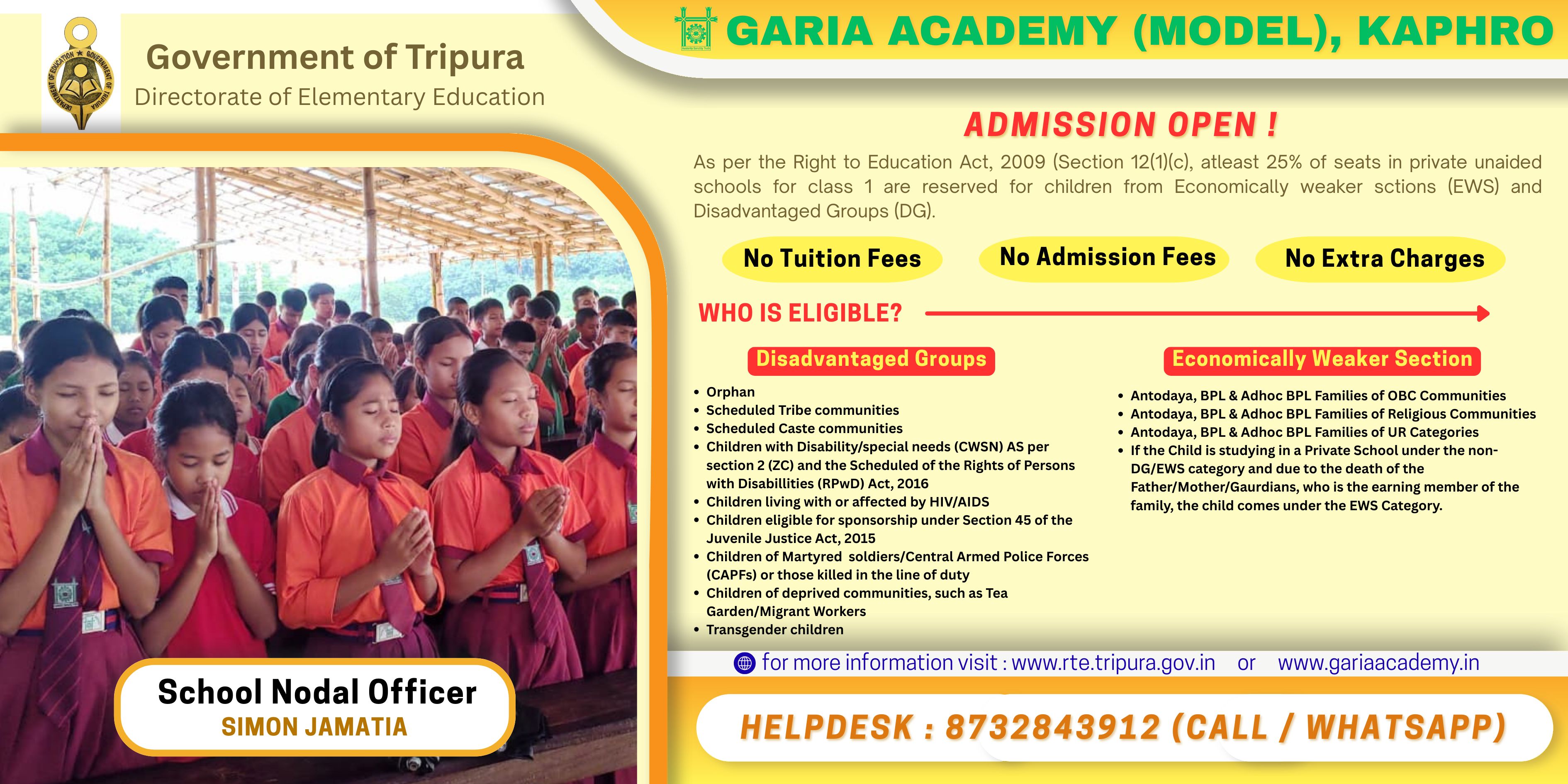 An English medium, Residential, and co-educational secondary school located at Kaphro, Amarpur, Gomati, Tripura. Managed by Baba Garia Mission (Reg. No. 3835/2001) under overall supervision of Jamatia Hoda, the apex body of the community.